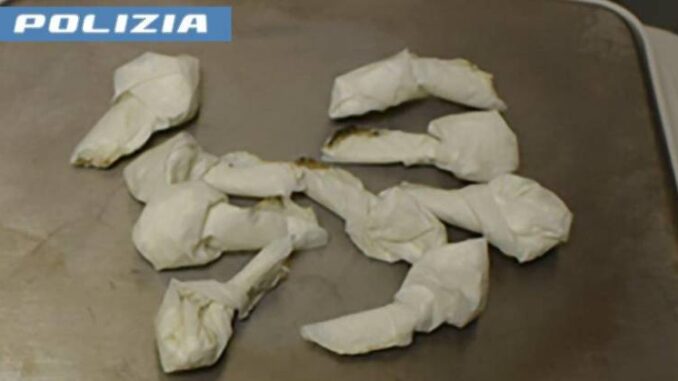 Dalla Perquisizione effettuata, per la ricerca di armi e strumenti di effrazione, sia a carico delle persone che del veicolo, gli agenti hanno rinvenuto su uno dei due soggetti, due pacchetti di sigarette all’interno dei quali vi erano nove dosi di sostanza stupefacente tipo cocaina, mentre occultato sulla persona hanno trovato un involucro contenente sostanza stupefacente tipo hashish.