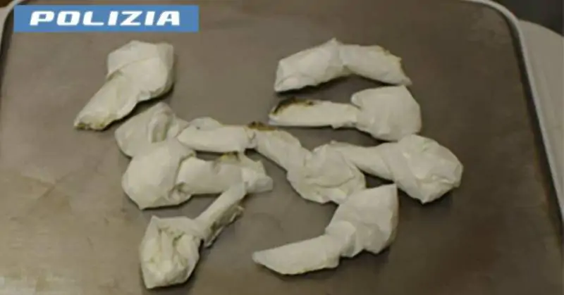 Dalla Perquisizione effettuata, per la ricerca di armi e strumenti di effrazione, sia a carico delle persone che del veicolo, gli agenti hanno rinvenuto su uno dei due soggetti, due pacchetti di sigarette all’interno dei quali vi erano nove dosi di sostanza stupefacente tipo cocaina, mentre occultato sulla persona hanno trovato un involucro contenente sostanza stupefacente tipo hashish.