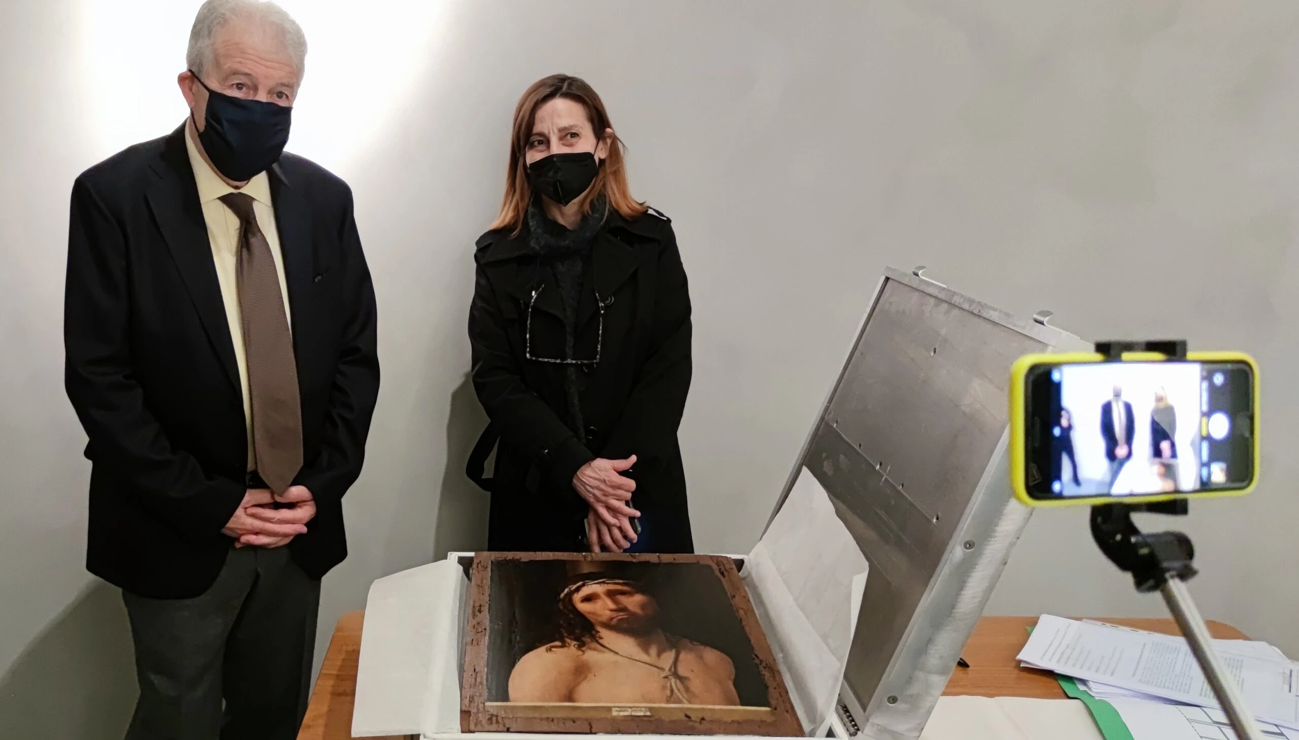 La conservazione di un’opera così preziosa ha comportato per la Banca diversi lavori di adeguamento del caveau, sia con l’integrazione dei sistemi di sicurezza e videosorveglianza, sia con sistemi di controllo delle condizioni di umidità e temperatura del locale dove è stato tenuto l’Ecce Homo. Condizioni, queste ultime, monitorate in continuo attraverso alcune strumentazioni (data-logger) integrate all’interno del locale mediante un punto rete dedicato ed un accesso wi-fi. Con un’applicazione installata sullo smartphone è stato così possibile visualizzare l’andamento delle condizioni di umidità relativa (intorno ai 55°) e di temperatura (20°). Tali condizioni sono state mantenute stabili con l’ausilio di una pompa di calore e di un umidificatore professionale ad azione battericida, appositamente installati ad integrazione di quelli esistenti. Presenti, anche, sensori di rilevazione incendio e allagamento. Il personale della Banca si è adoperato nella costante verifica dei livelli idrici dell’umidificatore e nelle tarature successive dei sistemi di areazione e di riscaldamento.