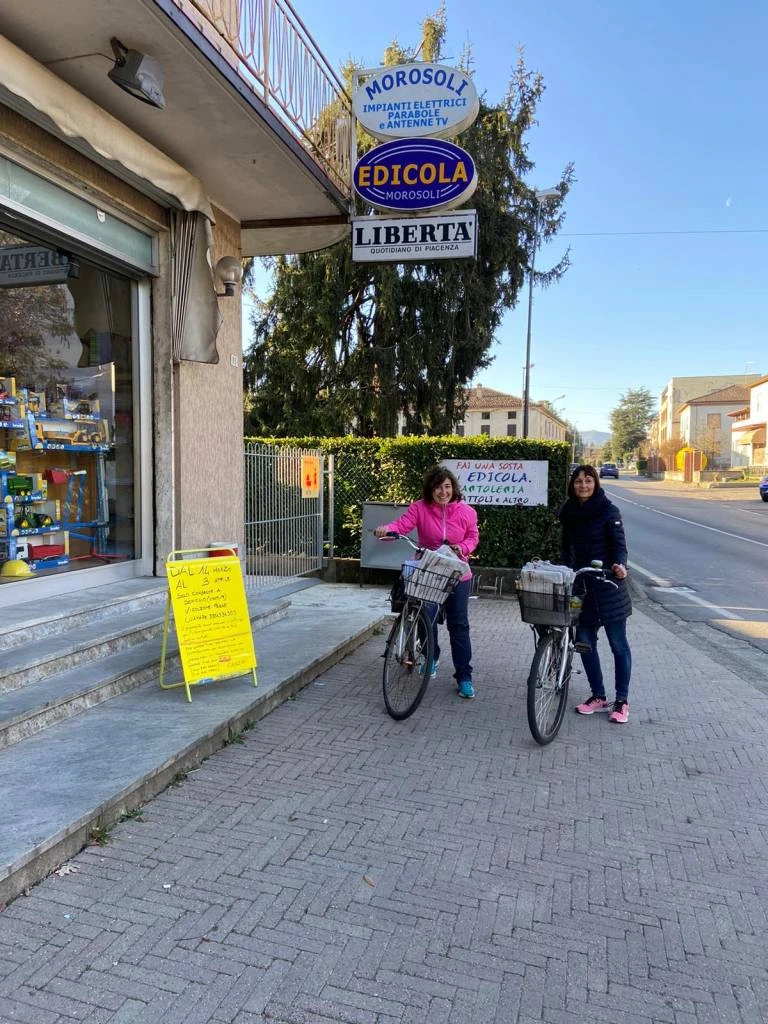 Claudio è titolare, insieme alla moglie e alla sorella, dell’Edicola Cartoleria Morosoli, di Vigolzone. In questo periodo di restrizioni ai tempi del coronavirus, Claudio e famiglia consegnano a domicilio i giornali, in bicicletta.