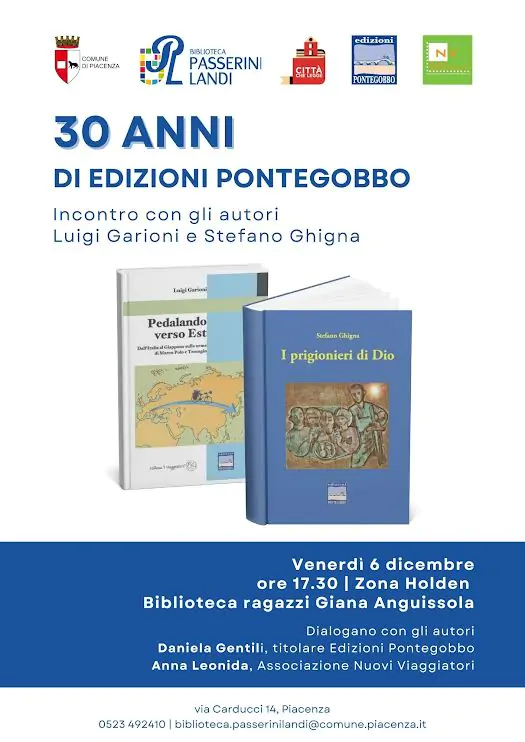 Le Edizioni Pontegobbo festeggiano i primi trent’anni di attività con due incontri d’autore nella cornice di Zona Holden, presso la Sezione Giana Anguissola della Biblioteca Passerini Landi, presentando gli ultimi volumi pubblicati.