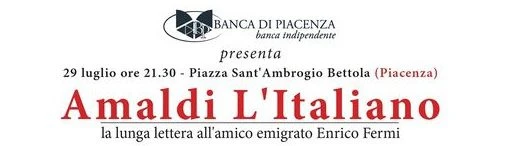 Amaldi l’Italiano, la lunga lettera all’amico Enrico Fermi con Corrado Calda, è il monologo dedicato al grande fisico piacentino Edoardo Amaldi, scritto da Calda e Giusy Cafari Panico direttrice artistica del Festival Radici e Identità: Cristoforo Colombo un viaggio attraverso le culture. Lo spettacolo è per sabato prossimo 29 Luglio alle ore 21 in Piazza Sant’Ambrogio a Bettola realizzato con il contributo della Banca di Piacenza.