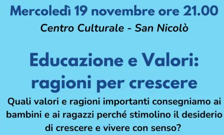 L’associazione Abracadabra Progetto Famiglie ODV di San Nicolò presenta Mercoledì 19 novembre alle 21, al Centro Culturale di S. Nicolò, il primo appuntamento di una serie di incontri per adulti, genitori, educatori, insegnanti, all’interno del progetto “A portata di mano” , progetto dedicato alle Fragilità familiari e realizzato grazie ad un bando regionale di cui l’associazione è capofila insieme ad altre realtà del territorio.