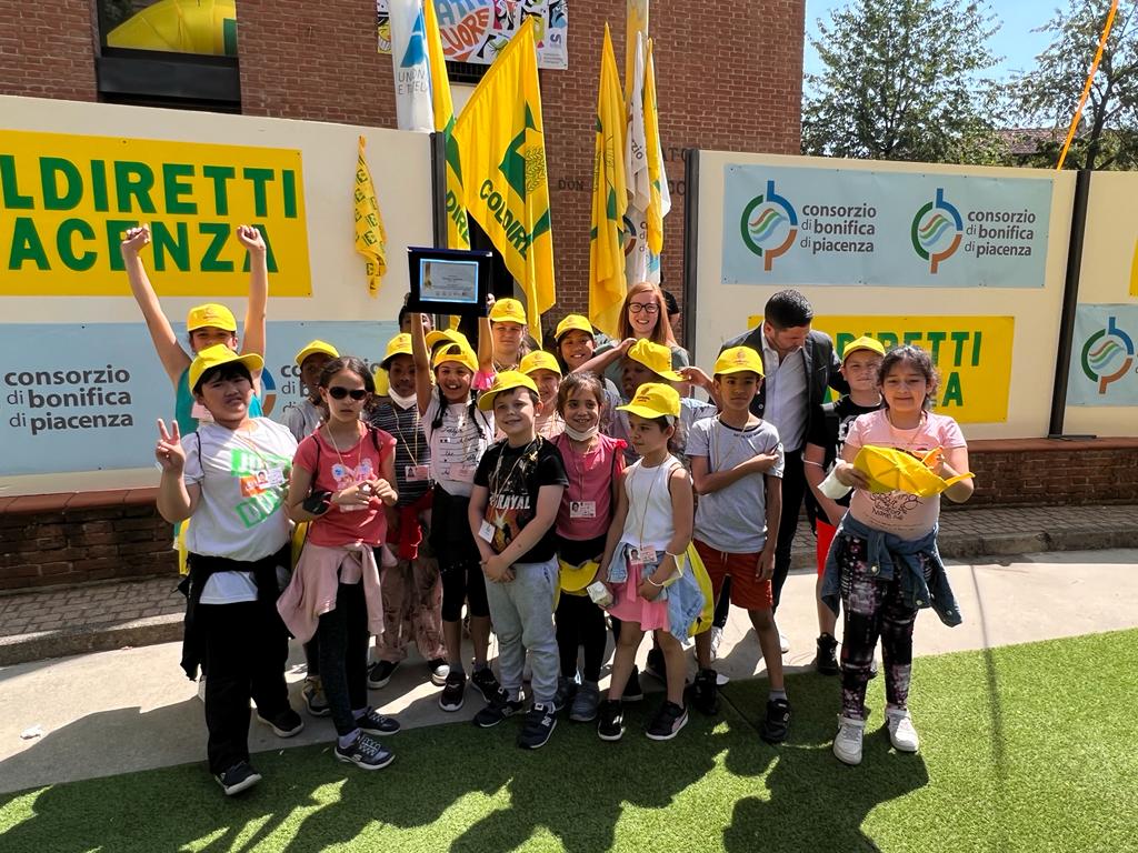 Grande successo nell’oratorio del centro parrocchiale Corpus Domini di Piacenza per la festa finale del progetto di “Educazione alla Campagna Amica” e della proposta didattica del Consorzio di Bonifica nelle scuole piacentine. L’evento è tornato finalmente in presenza: questa mattina, mercoledì primo giugno, una rappresentanza degli studenti coinvolti dalle lezioni in classe, si è ritrovata per le premiazioni degli elaborati finali e per trascorrere alcune ore all’aperto con iniziative e laboratori, finalizzati alla valorizzazione dei corretti stili di vita e di una sana alimentazione, consapevole dell’importanza della stagionalità e della territorialità del cibo.