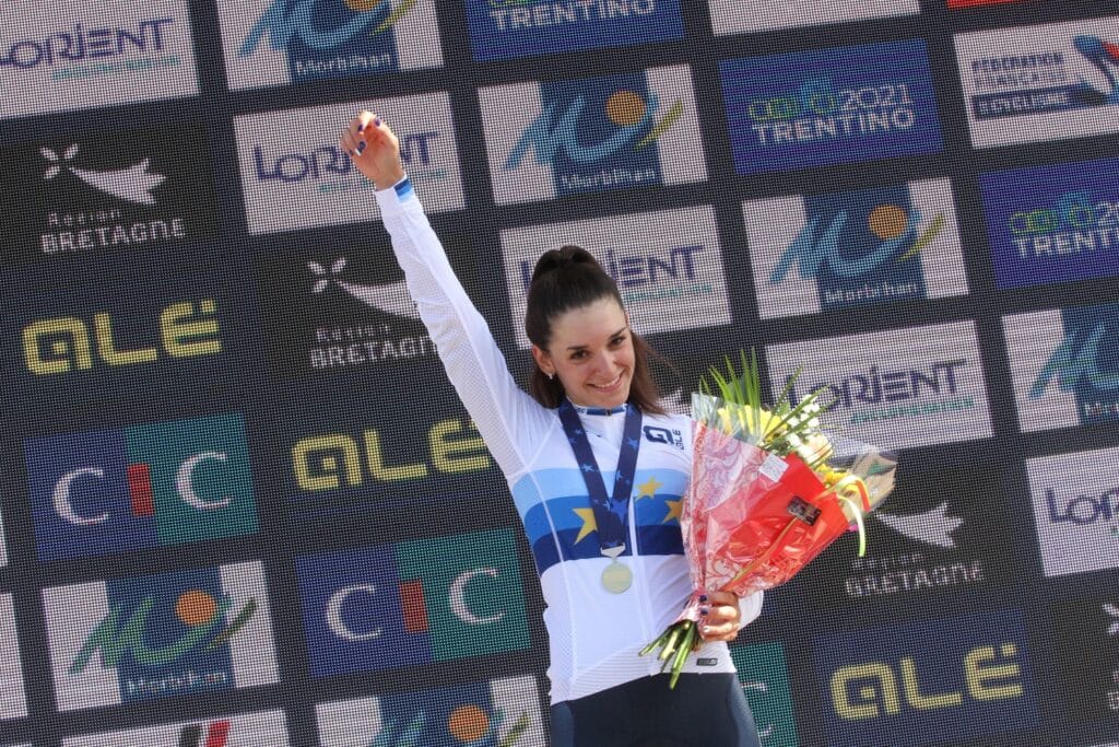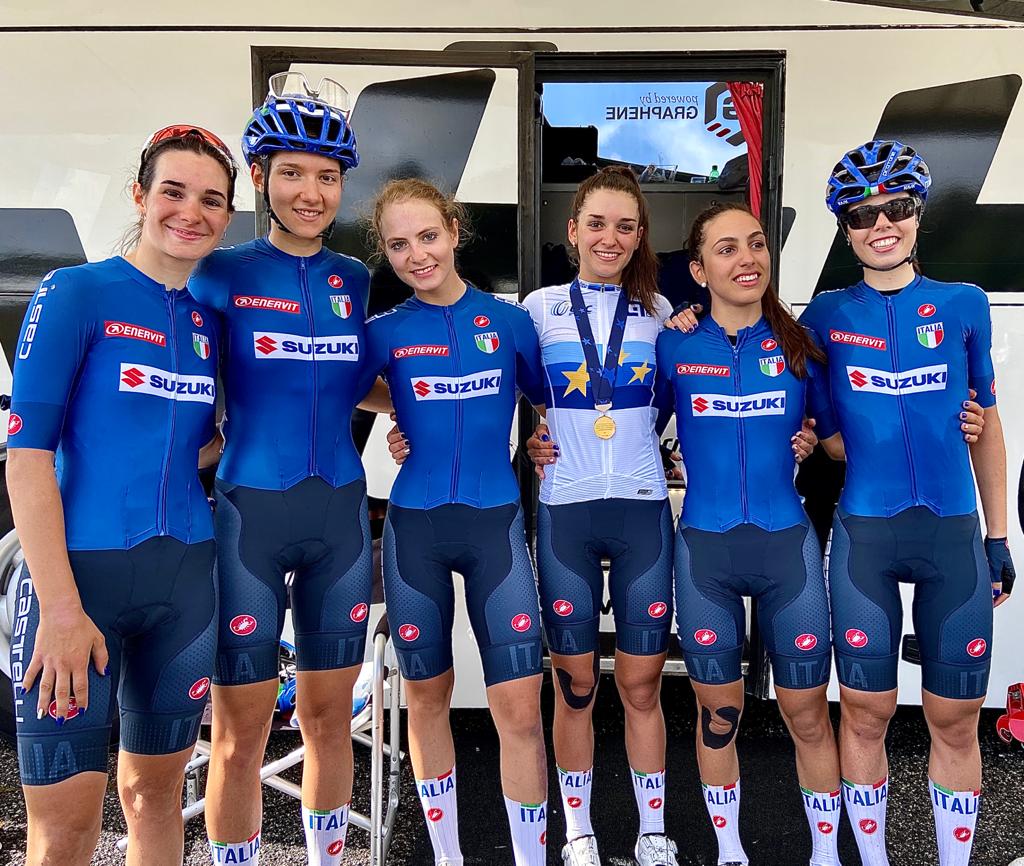 Una volata magistrale, capitalizzando il grande lavoro di squadra azzurro per arrivare a vincere in modo netto e coronare un altro sogno in campo internazionale. Agli Europei su strada di Plouay (Francia) brilla la stella di Eleonora Camilla Gasparrini, portacolori del VO2 Team Pink che venerdì in maglia azzurra ha vinto il titolo continentale nella prova in linea per Donne Juniores. Nulla da fare per la coppia belga formata da Marith Vanhove e Katrijn De Clerq, che si sono dovute accontentare rispettivamente dell’argento e del bronzo. Nell’ottimo lavoro dell’Italia spicca anche quello di un’altra “panterina”, l’ossolana Francesca Barale, limitata da una caduta nel finale e arrivata 28esima.