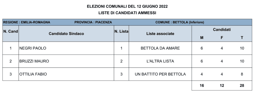 A Bettola corrono Paolo Negri (Bettola da Amare), Mauro Bruzzi (L’Altra Lista), Fabio Ottilia (Un battito per Bettola).
