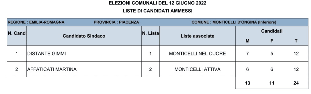 A Monticelli corrono Gimmi Distante (Monticelli nel Cuore) e Martina Affaticati (Monticelli Attiva).