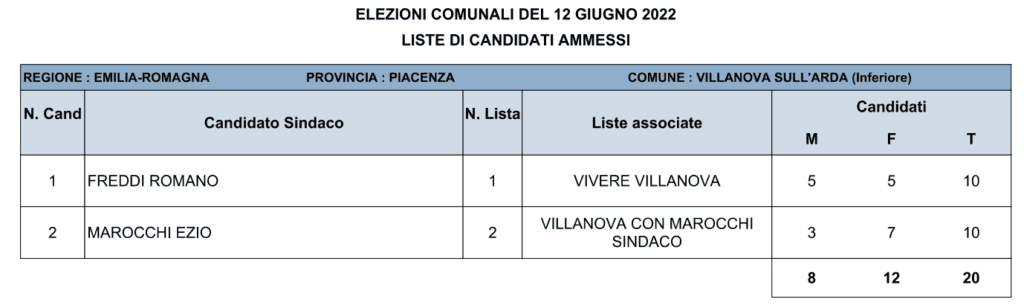 A Villanova corrono Romano Freddi (Vivere Villanova) ed Ezio Marocchi (Villanova con Marocchi sindaco).