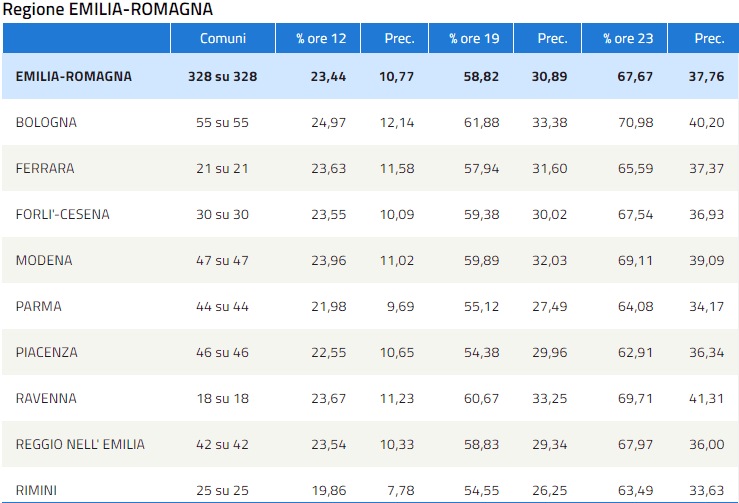 AGGIORNAMENTO – Alle ore 23 l’affluenza sale al 62,92% con 46 comuni su 46.