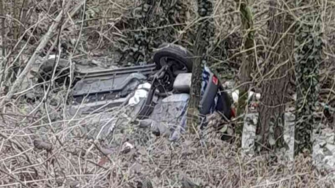 Dopo aver sbandato la vettura si è ribaltata lungo una breve scarpata a lato della carreggiata.