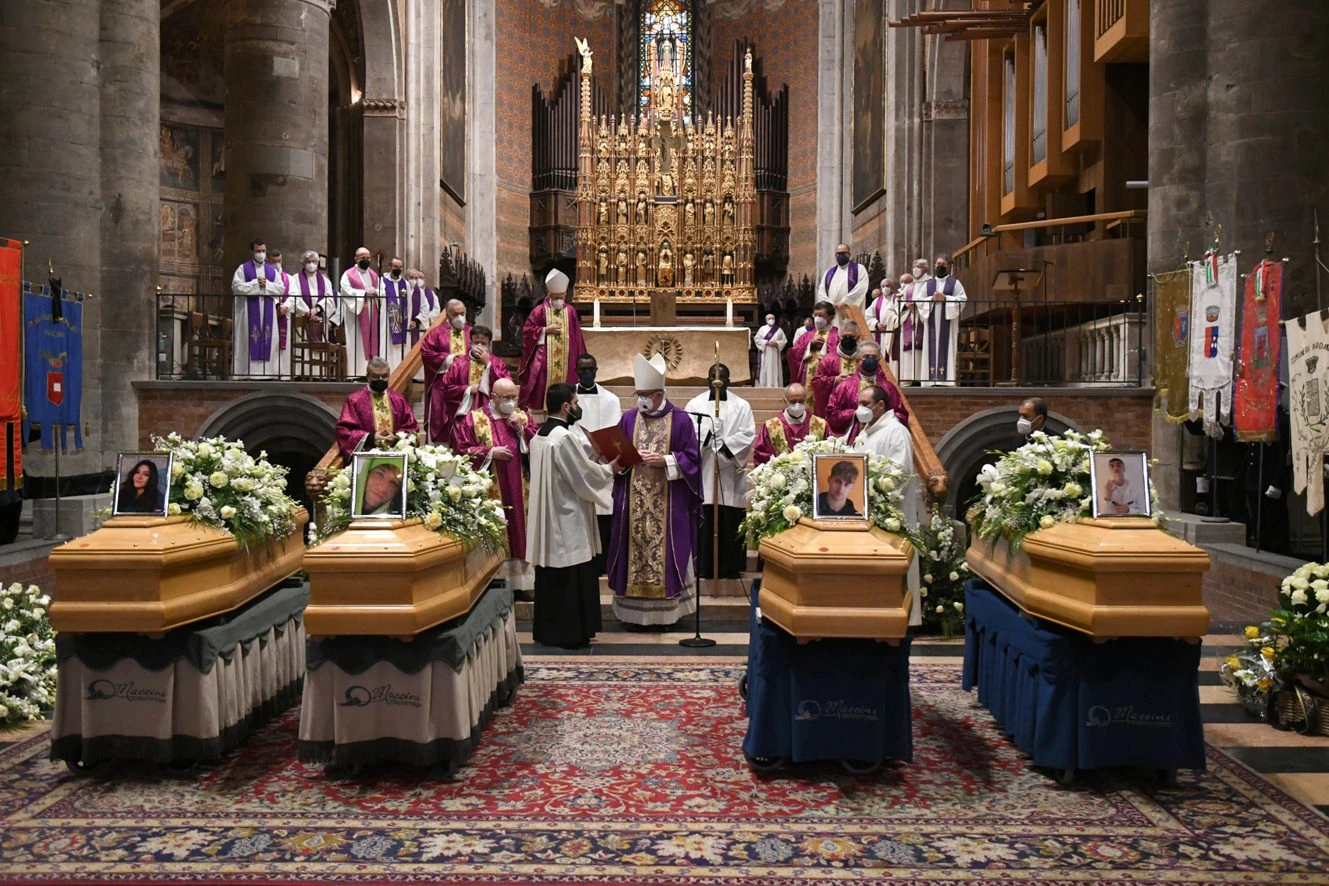 Ai funerali hanno concelebrato, insieme a numerosi sacerdoti, mons. Gianni Ambrosio, amministratore apostolico di Massa Carrara-Pontremoli e vescovo emerito di Piacenza-Bobbio, il vicario generale mons. Luigi Chiesa e i parroci dei quattro giovani: mons. Giuseppe Busani, don Gianni Bergomi, don Fabio Battiato e don Pierluigi Bolzoni.