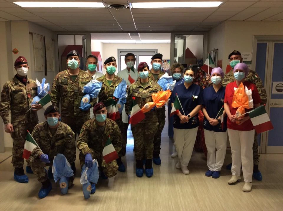 Sorrisi, un dolce pensiero e bandierine per i piccoli ricoverati in Pediatria. Questa mattina i bambini degenti in reparto hanno ricevuto la visita dei militati dell’Esercito Italiano che in questi settimane stanno prestando servizio a Piacenza per supportare i colleghi sanitari nella lotta al covid19. “Siamo in città da quasi un mese – hanno spiegato gli autori del gesto – e volevamo far sentire la nostra solidarietà a questa comunità che ci ha così ben accolto”. I militari hanno rallegrato la giornata dei bambini consegnando loro bandierine dell’Italia, giocando una partita di calcio balilla e consegnando le graditissime uova di cioccolato.