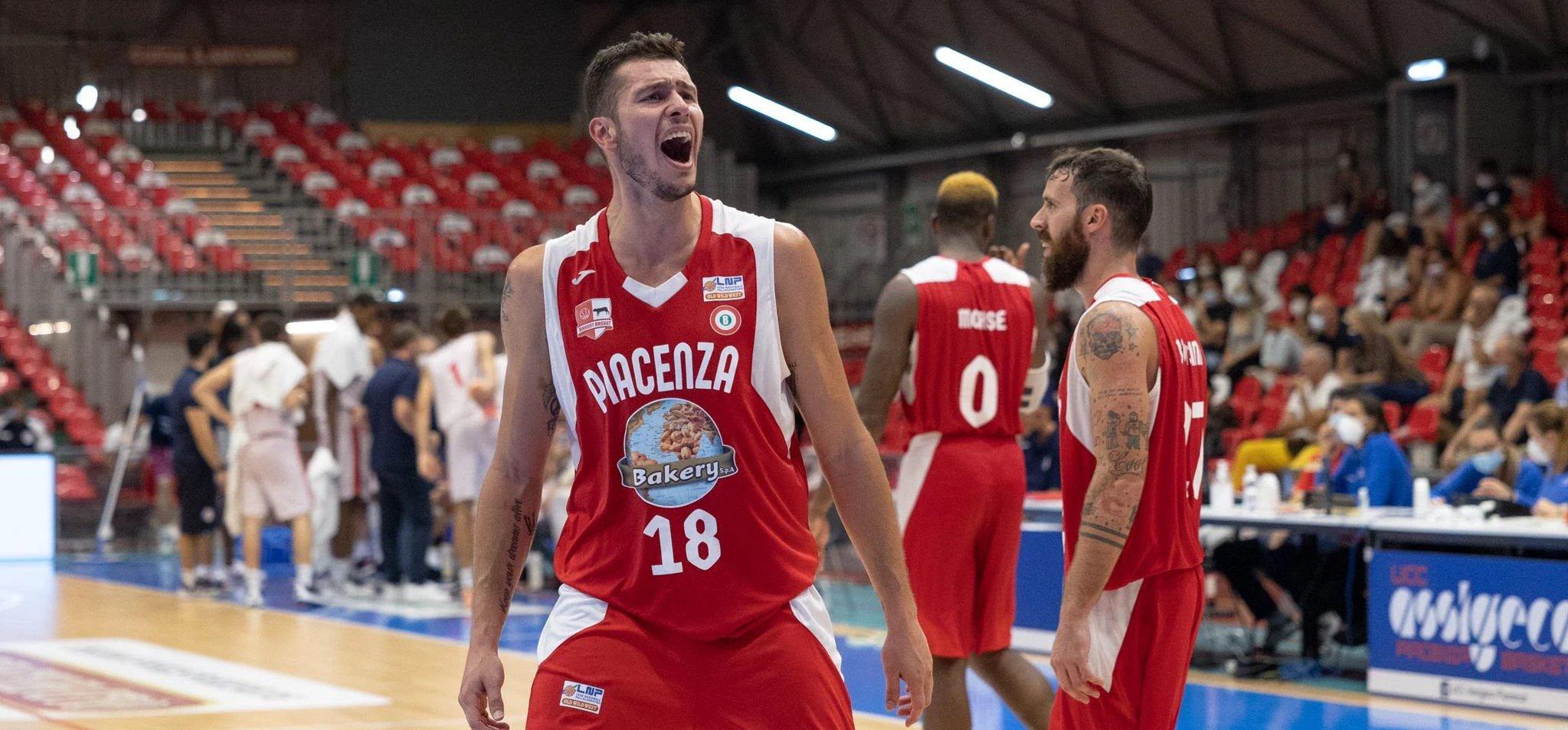Il quarto, ed ultimo parziale, accoglie finalmente una nuova Bakery che, guidata da Nik Raivio, si porta sul -10, 54-44. Bonacini accorcia da 2, 55-46 con 7’ da giocare; sul versante difensivo il play originario di Guastalla subisce sfondamento e guida la rimonta piacentina che si fa viva nella testa dei biancorossi pochi possessi dopo, con altri 3 punti di Bonacini, 55-49.