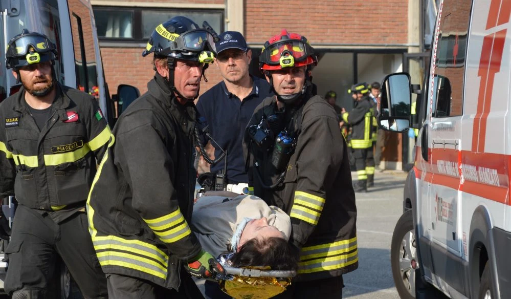 Esercitazione organizzata all’interno dell’ex caserma dei vigili del fuoco, appunto in viale Dante. Sono le 15 quando dall’edificio provengono quattro forti esplosioni e inizia a fuoriuscire del fumo. In quel momento “passavano per caso” il presidente del consiglio comunale, Paola Gazzolo, e il viceprefetto, Claudio Giordano, i primi ad allertare i soccorsi con il telefono. A quel punto si è messa in moto la macchina dei soccorsi che ha visto coinvolti Vigili del fuoco, 118, Anpas, Croce Rossa, Protezione Civile, polizia, carabinieri, polizia locale e persino l’eliambulanza. Oltre cento gli operatori in azione, 25 le persone da soccorrere tra gravi e meno gravi.