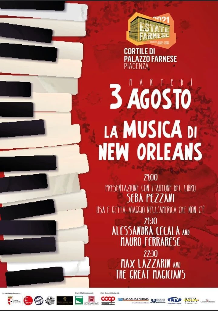 Si arricchisce di un ulteriore straordinario evento il già ricco programma della rassegna #EstateFarnese. Il prossimo 3 agosto infatti, con inizio alle ore 21, sul palco allestito nel Cortile di Palazzo Farnese, saliranno ospiti e artisti per una serata all’insegna del blues e del ragtime dal titolo “La musica di New Orleans”.