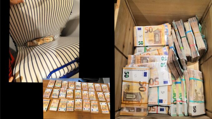 In particolare, hanno rinvenuto e sequestrato circa 250.000 euro in banconote dal taglio di 100 e 50 euro, raccolte in mazzette avvolte accuratamente nel cellophane. Una buona parte erano nascoste all’interno di un materasso posto in un lettino ripiegabile; la restante parte collocata all’interno di un armadietto adibito alla detenzione di armi.