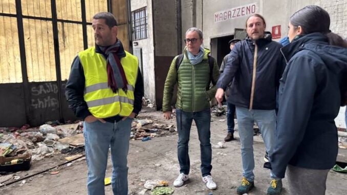 Il sopralluogo ha permesso di verificare lo stato attuale dei luoghi – documentato dalle immagini che testimoniano il grave degrado e abbandono dell’immobile – e di condividere le prime fasi operative del percorso di rigenerazione che restituirà alla città un’area oggi interdetta e inutilizzata.