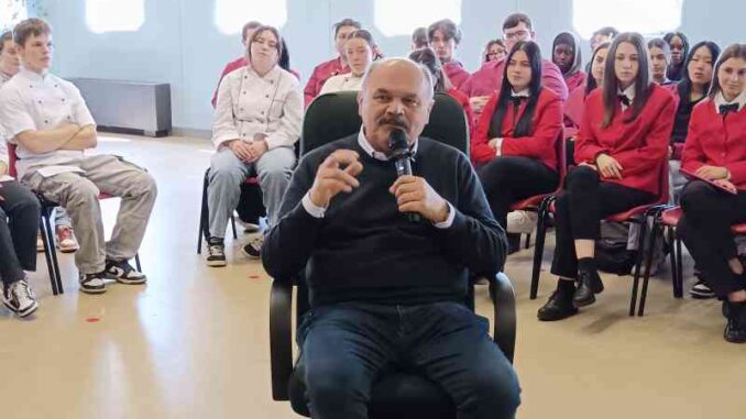 “Chi è giovane ha un sacco di futuro davanti. Quindi mi piace dialogare con loro di questi temi, soprattutto in una scuola che si occupa di cibo, che è il mio mestiere”, spiega Farinetti.