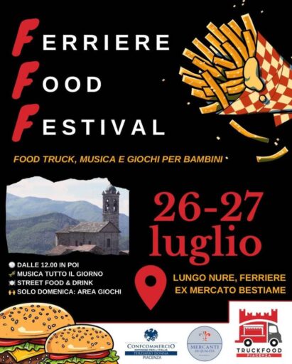 “Il Festival si tiene in un bellissimo Comune, Ferriere – dice il Vice Presidente del Consorzio Truck Food Matteo Marchi – la festa sarà caratterizzata soprattutto dal buon cibo e dalla buona musica. Ci saranno sei operatori che propongono piatti del territorio, dall’antipasto al dolce, un menù completo, accompagnato dalla musica per tutta la giornata e con tre stand, con cocktails birra vino e bibite uno è del consorzio e due sono attività dale paese”.