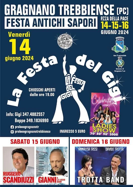Per la prima volta – spiega il Presidente della locale Pro Loco Giuseppe Ghezzi – all’interno di questa manifestazione avremo anche la Festa del Gigi. Per noi è un evento molto importante che ci ha impegnato molto e speriamo che il tempo ci possa dare una mano. La serata sarà con le celebrità che arrivano dal programma Tale e Quale di Rai Uno. Uno spettacolo di due ore e per l’occasione abbiamo preparato un menù apposito per la serrata del venerdì.