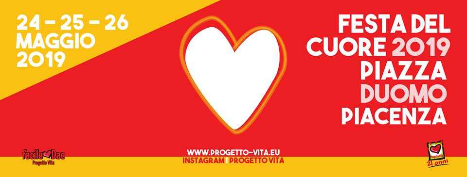 Festa del Cuore 2019 con Progetto Vita dal 24 al 26 maggio. Piacenza è la città più “cardioprotetta” d’Europa per numero di defibrillatori (DAE) presenti sul territorio. Infatti se ne contano 883 sul territorio, pari a 1 ogni 290 abitanti. Come ogni anno, da ventuno per esattezza ad oggi, Progetto Vita organizza la sua festa. In particolare quest’anno pone l’accento sul progetto “LifeStyle”. Di cosa si tratta? Della campagna di informazione sulla prevenzione del rischio cardio-vascolare legata a corretti stili di vita.