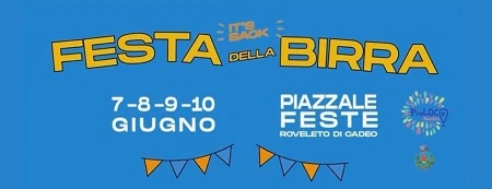 Festa della birra a Roveleto di Cadeo torna dopo 13 anni, da venerdì 7 a lunedì 10 giugno, stand gastronomici tutte le sere a partire dalle 19.30 e musica dal vivo. Organizza la rinata Pro Loco di Roveleto.
