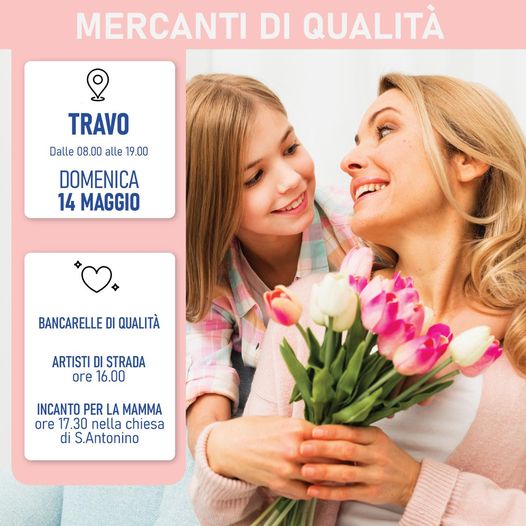 Informazioni sula Festa della Mamma a Travo sulla pagina Facebook Mercanti di Qualità Piacenza.
