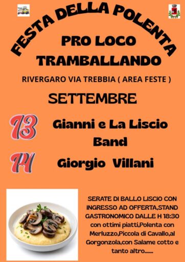 Festa della Polenta a Rivergaro il 13 e 14 settembre. Si potranno gustare piatti a base di merluzzo, piccola di cavallo, gorgonzola, salame cotto.