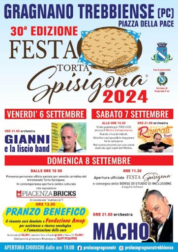 Un compleanno importante – commenta Giuseppe Ghezzi Presidente della Pro Loco di Gragnano – infatti abbiamo messo in campo diversi eventi e diverse opportunità da venerdì a domenica, giornata che vede la novità del pranzo benefico. Come Pro Loco abbiamo chiesto di diventare “Sagra di Qualità”, quindi avremo nei tre giorni degli ispettori che verranno a verificare le strutture, la festa e in particolare la nostra torta.