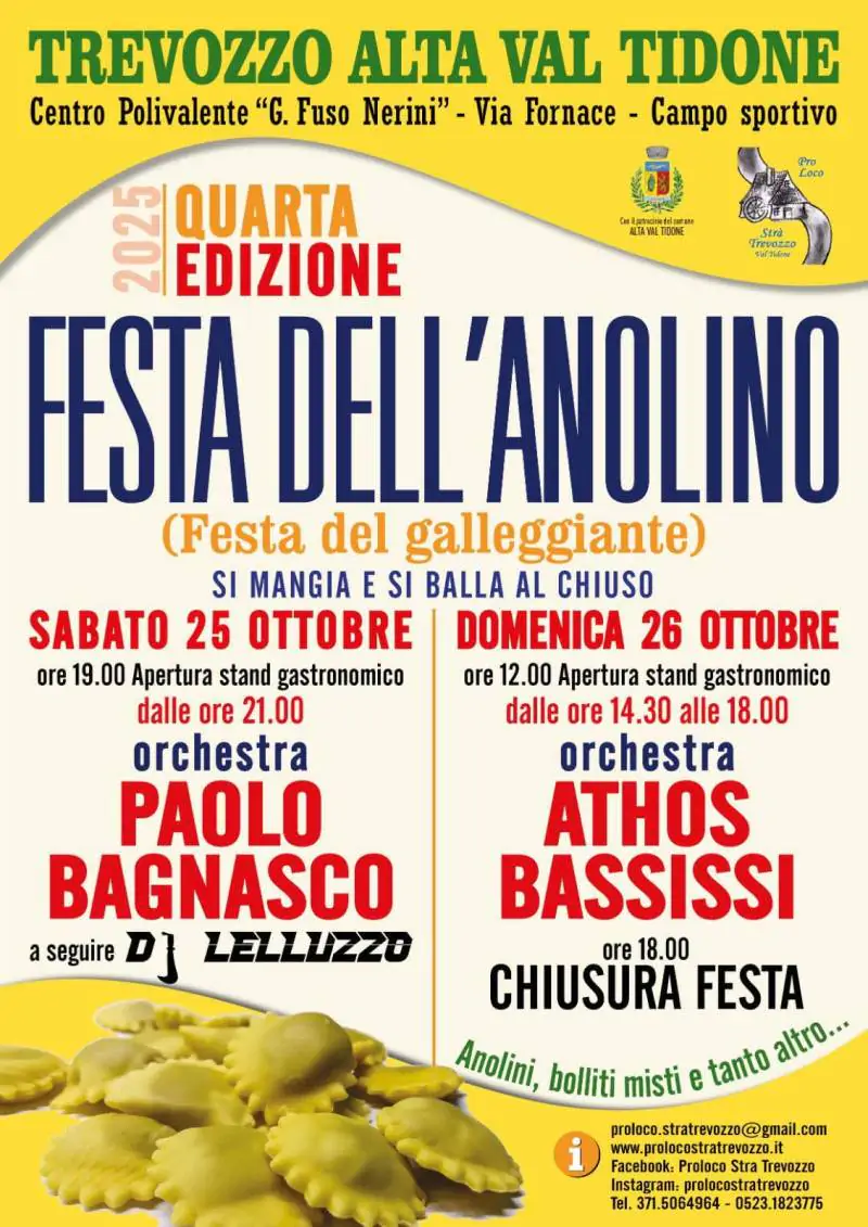 Festa dell’Anolino il 25 e 26 ottobre a Trevozzo Alta Val Tidone. Due giornate all’insegna del buon cibo piacentino e della musica.
