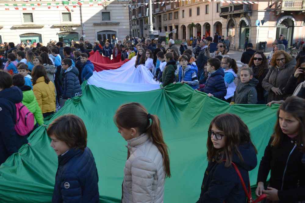 Questa mattina erano presenti centinaia di giovanissimi studenti che hanno portato all’ombra di palazzo Gotico un enorme Tricolore: “I simboli li innalziamo, non li sfruttiamo. Perché questi simboli racchiudono il senso di comunità”, conclude Falco.