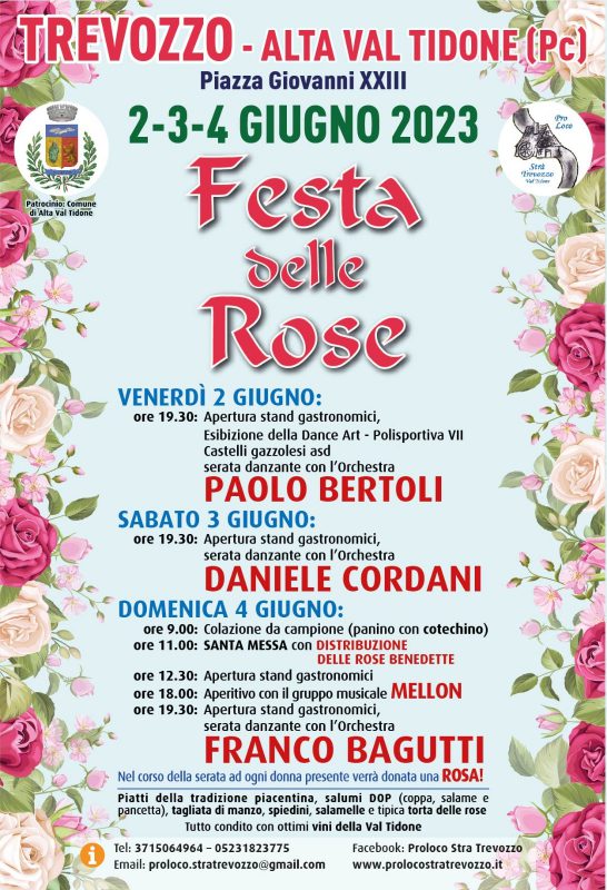 WhatsApp: +39 371 506 4964 | Pro Loco Strà Trevozzo Val Tidone WEB: https://www.prolocostratrevozzo.it/festa-delle-rose-2023.html