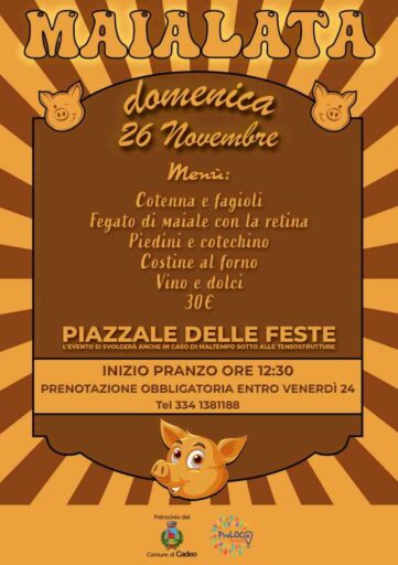 La Grande Maialata si tiene nel Piazzale delle Feste. Per prenotare:334 138 1188. L’evento si svolge anche in caso di maltempo sotto le tensostrutture.