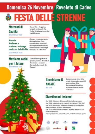 Festa delle Strenne, a Roveleto di Cadeo il 26 novembre Mercanti di Qualità e pranzo con la “Grande Maialata”. Una domenica di festa con i banchi 100% made in Italy pronti a presentare tutte le proposte che anticipano il Natale. Sulle bancarelle: moda, oggettistica, artigianato, enogastronomia, fiori e piante.