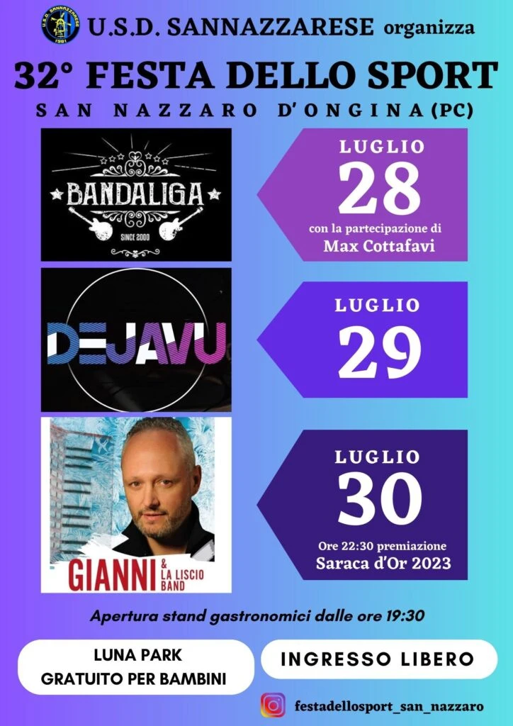 Festa dello sport a San Nazzaro D’Ongina dal 28 al 30 luglio 2023.