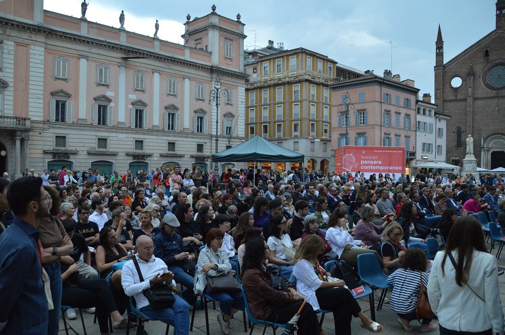 Ispirare un futuro più consapevole di ciò che possiamo essere e realizzare. Questo l’obiettivo del Festival del Pensare Contemporaneo che questo pomeriggio ha dato il benvenuto al pubblico piacentino con un’apertura ricca di contenuti, ospitando un mix di musica e poesia per stimolare il pensiero e la meraviglia. Andrea Colamedici, direttore filosofico del festival, durante l’evento ha dialogato con musicisti e artisti, capaci di veicolare le proprie visioni del contemporaneo attraverso diverse forme espressive.
