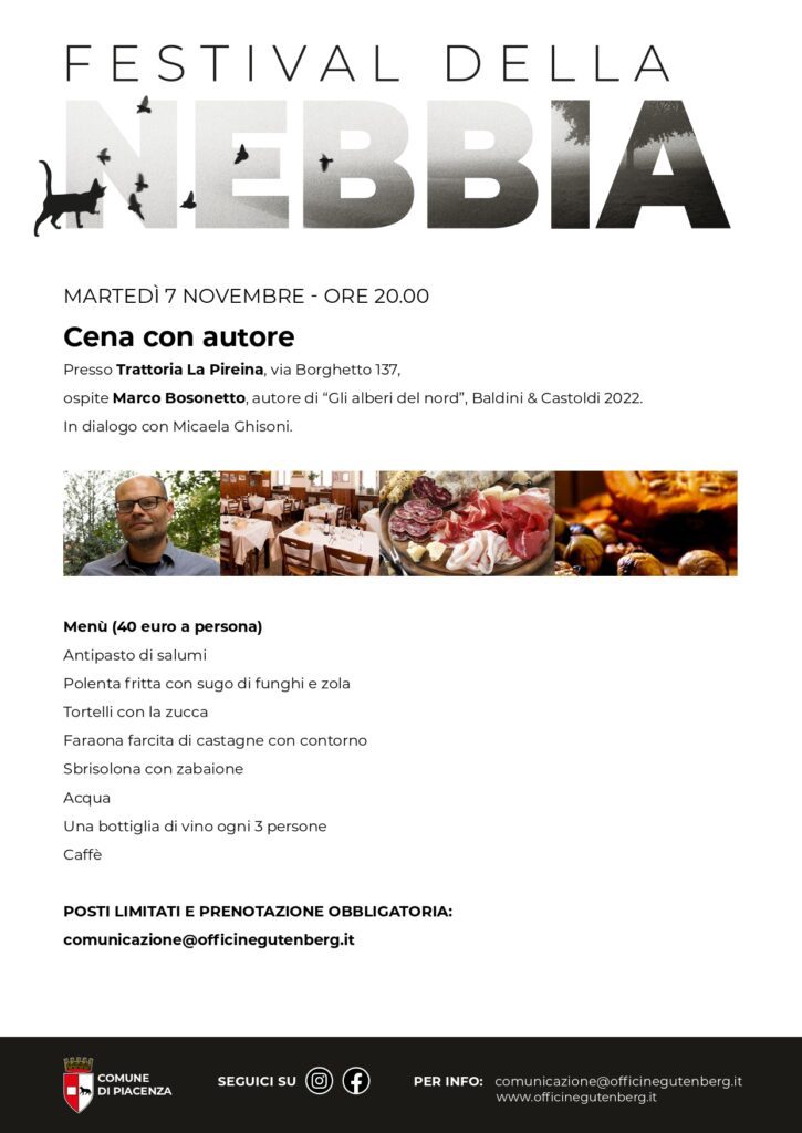 Festival della Nebbia prima edizione ha messo insieme un collaudato gruppo di lavoro, forte dell’esperienza maturata negli anni scorsi con quattro fortunate edizioni di “Profondo Giallo” e composto da Officine Gutenberg cooperativa sociale, Cinemaniaci, Piacenza Music Pride, Associazione Culturale Crisalidi, Papero editore, librerie Fahrenheit 451 e Bookbank, ha deciso di organizzare la prima volta del Festival della Nebbia.