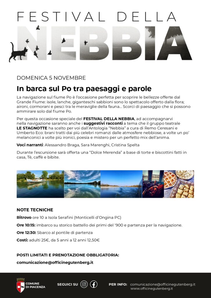 La rassegna si svolge a Piacenza da sabato 4 a domenica 19 novembre 2023 e prevede proiezioni cinematografiche, concerti, spettacoli teatrali (c’è anche il teatro di strada per bambini), tavole rotonde e incontri letterari con autrici e autori di caratura nazionale; e ancora, una cena in trattoria con autore e un reading sulla motonave che solca le acque del Po.
