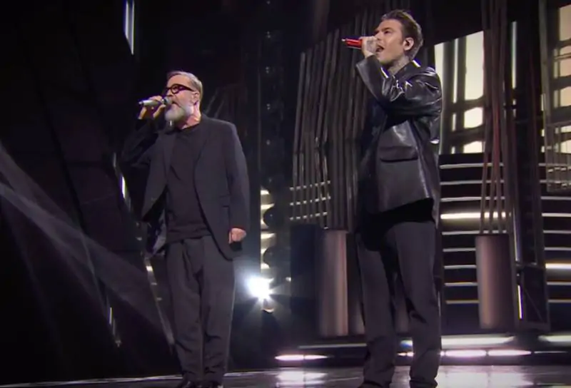 FEDEZ & MASINI – “MALE NECESSARIO”. Brano azzeccato per arrivare nei primi 5 poi deciderà il pubblico. Voto 7. Dai social: le lucine tra il pubblico ricordano i concerti di Masini degli anni 90.