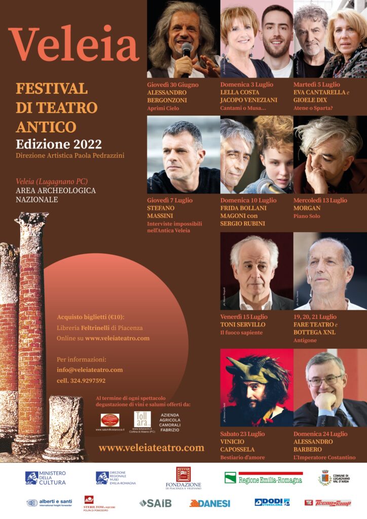 Toni Servillo, Vinicio Capossela, Alessandro Barbero, Alessandro Bergonzoni, Stefano Massini, Frida Bollani Magoni, Sergio Rubini, Lella Costa, Jacopo Veneziani, Gioele Dix, Eva Cantarella, Marco Baliani, Massimo Foschi, Petra Valentini, Morgan… Per il Festival del Teatro Antico di Veleia è l’edizione del ritorno in grandissimo stile. Un’edizione dei record con dodici appuntamenti e nomi roboanti della cultura italiana. Un programma che si estenderà dal 30 giugno al 24 luglio 2022, ovviamente nell’area archeologica di Veleia.