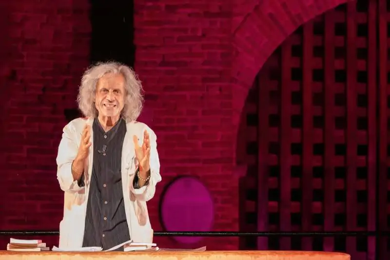 Il pubblico del festival lo ha ascoltato, ha partecipato alla serata ed è rimasto, attento e partecipe, con gli ombrelli, seduto sotto la pioggia ad applaudire Bergonzoni che, in stato di grazia, ha dato vita ad uno spettacolo stupendo, esilarante e toccante, in un’atmosfera surreale.