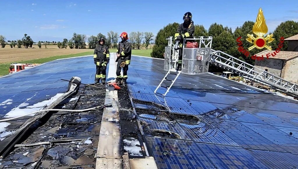 L’incendio ha interessato il tetto del capannone di un’azienda agricola e il rogo parrebbe essere iniziato proprio dai pannelli fotovoltaici installati sulla struttura.