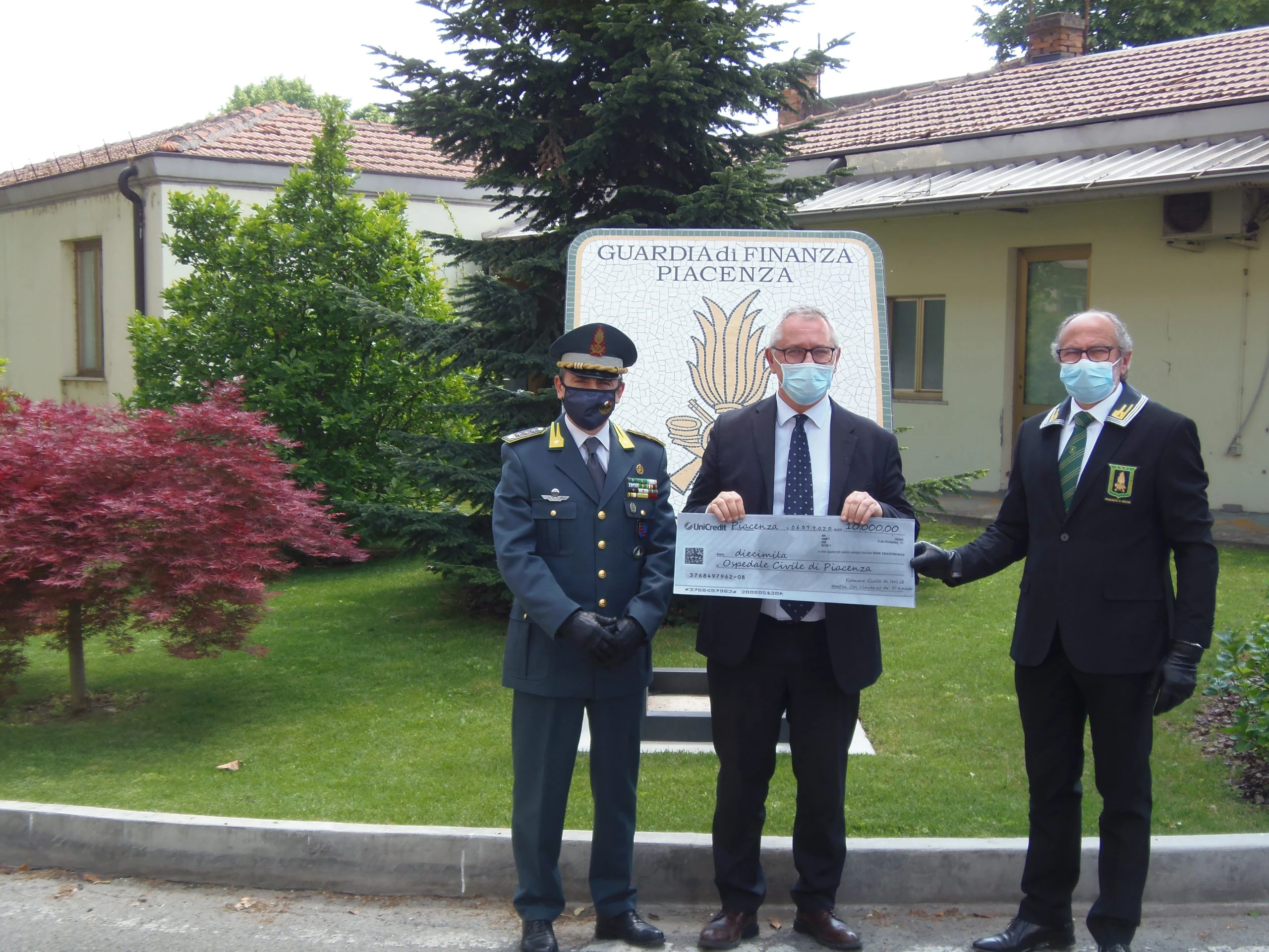 Importante gesto di solidarietà, questa mattina, presso la caserma Luigi Galli, sede del Comando Provinciale della Guardia di Finanza e della Sezione Provinciale dell’Associazione Nazionale Finanzieri d’Italia (ANFI). Alla presenza del Comandante Provinciale, Colonnello Daniele Sanapo, ha avuto luogo un breve ma significativo incontro tra il Presidente della Sezione Provinciale ANFI – Brigadiere Capo in congedo Davide Mazza, ed il Direttore Generale dell’Azienda Unità Sanitaria Locale di Piacenza – Ing. Luca Baldino.