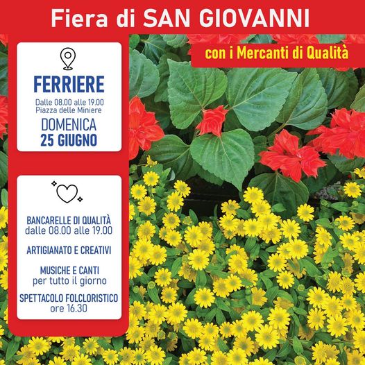 Fiera di San Giovanni a Ferriere con i Mercanti di Qualità il 25 giugno. Una domenica dove apprezzare le proposte di Artigianato, dei creativi e tutto quello che serve per l’estate 2023.