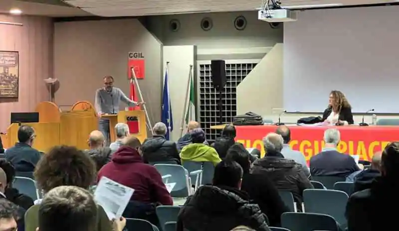 Un’affollata assemblea dei metalmeccanici questa mattina, 15 novembre, in sala Nelson Mandela a Piacenza, si tratta dell’Assemblea generale della Fiom Cgil di Piacenza. Discussione tra i delegati delle aziende metalmeccaniche del territorio che rappresentano migliaia di lavoratori.