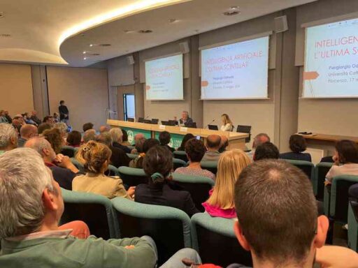 Odifreddi ha poi tenuto la sua lectio magistralis, dal significativo titolo “Intelligenza artificiale: l’ultima scintilla?”, partendo da un excursus storico che supera di gran lunga i 70 anni da quando si sente parlare del tema. “Da allora tanti si sono interrogati se questa scintilla nasconda pericoli e in tanti ci mettono in guardia dai possibili pericoli”, ha detto, “occorre che continuiamo a studiarla e soprattutto a mantenere il controllo sulla materia”.