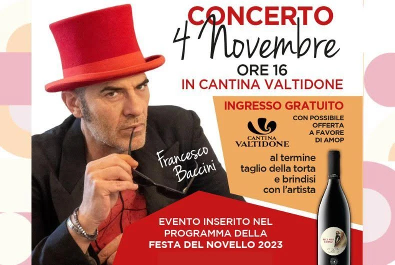 Sabato 4 novembre alle ore 16, la Festa del Picchio Rosso di Cantina Valtidone avrà un ospite speciale: il cantautore Francesco Baccini, con un concerto ad ingresso libero.