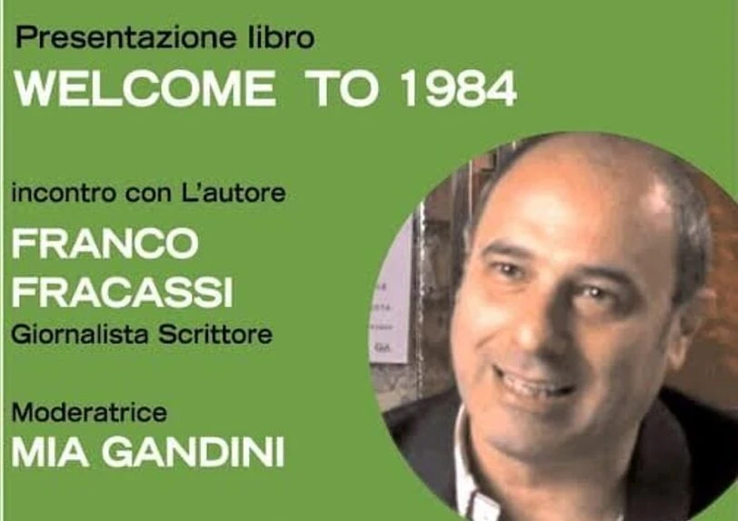 Franco Fracassi presenta Welcome to 1984 libro di cui è coautore con Carmen Tortora, appuntamento Venerdì 6 ottobre alle ore 18 presso lo Spazio Kairòs, Piazzetta s. Savino 29 ingresso a offerta libera. Informazioni e prenotazioni 3387588469