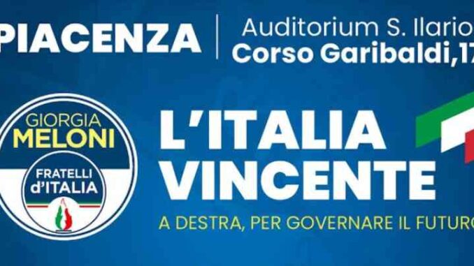 “E’ stato un anno segnato da sfide enormi, sia per quanto riguarda l’interesse del Paese così come per i gravi fatti internazionali che si sono susseguiti, ma l’Italia ha potuto contare su una guida salda, decisa e qualificata quale è stata quella del Governo Meloni” lo scrivono in una nota i componenti del Coordinamento provinciale di Fratelli d’Italia, annunciando per venerdì 10 novembre alle ore 21.00, all’Auditorium S. Ilario di Corso Garibaldi n.17 a Piacenza, la manifestazione dal titolo “L’Italia vincente”.