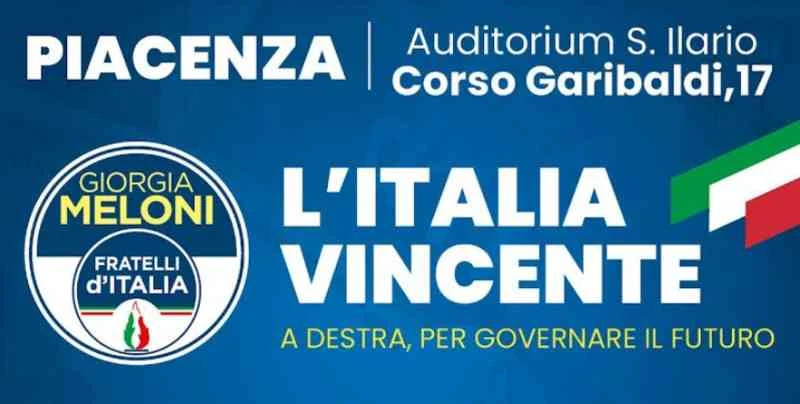 “E’ stato un anno segnato da sfide enormi, sia per quanto riguarda l’interesse del Paese così come per i gravi fatti internazionali che si sono susseguiti, ma l’Italia ha potuto contare su una guida salda, decisa e qualificata quale è stata quella del Governo Meloni” lo scrivono in una nota i componenti del Coordinamento provinciale di Fratelli d’Italia, annunciando per venerdì 10 novembre alle ore 21.00, all’Auditorium S. Ilario di Corso Garibaldi n.17 a Piacenza, la manifestazione dal titolo “L’Italia vincente”.
